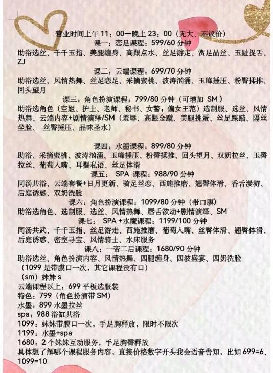 服务项目: 助浴、艳舞、角色扮演、SM(女王调教)水墨、SPA